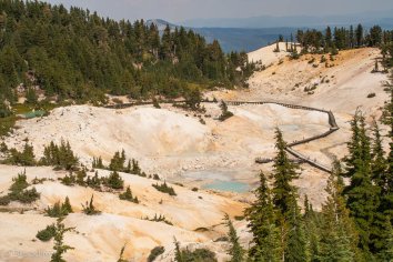 Wir lassen unser Auto am Lake Helen stehen und laufen den Trail zum Bumpass Hell. Hier kann man am Ende des Trails jede Menge kochende und blubbernde Schlammlöcher, Fumarolen und heiße Quellen bewundern. Der Park wird deshalb auch oft als kleiner Bruder des Yellowstone bezeichnet.