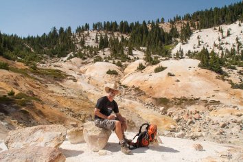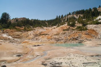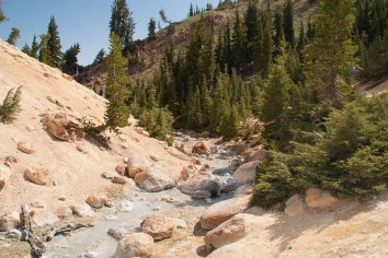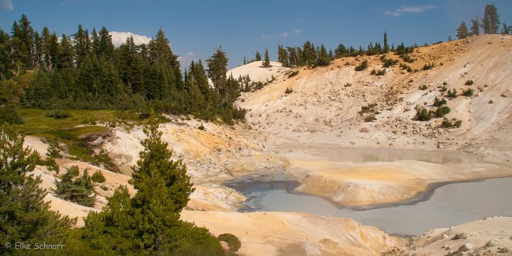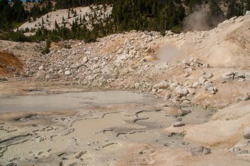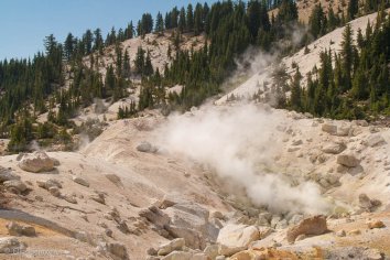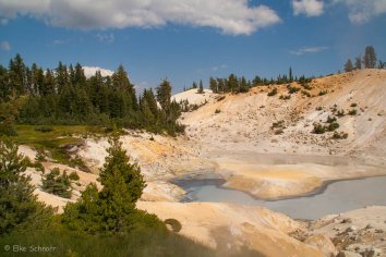 Der Lassen Peak ist einer der größten Lavadom-Vulkane der Erde. Er entstand bei der Zerstörung des Mount Tehama, und ist im Jahre 1914 das letzte Mal ausgebrochen. Dass das Gebiet hier aber immer noch vulkanisch aktiv ist, können wir bei unserem nächsten Stopp gut erkennen: