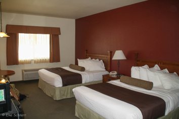 So verlassen wir also den Lassen Park und fahren die verbleibenden 50 Kilometer zu unserem Hotel. Gegen 18:30 Uhr haben wir im Best Western Rose Quartz Inn eingecheckt, die Taschen auf’s Zimmer geräumt und alles für sauber befunden.