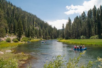 Mit einem Bus wird man von Truckee River Rafting ein ganzes Stück den Truckee River flussaufwärts gefahren, wo man mit Schlauchbooten einsetzen und sich ganz gechillt flussabwärts treiben lassen kann. Also kein Rafting wie wir es bisher kennen mit einem Guide, sondern auf eigene Faust.