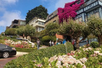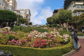 Und wo wir dann schon einmal in der Lombard Street sind, fahren wir auch gleich noch durch das berühmte kurvenreiche Stück, da sich der Touristen-Andrang zum Montag Morgen auch gerade ziemlich in Grenzen hält.
