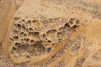 Am Pebble Beach dagegen haben wir Glück: es herrscht gerade Ebbe und so machen wir hier noch einen längeren Stopp und schauen uns die tollen Tafonis an, in denen sich viele bunte Steinchen angesammelt haben. Wir können uns gar nicht satt sehen, so schön ist es hier und wir knipsen was das Zeug hält.