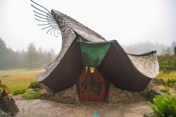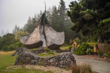 An der Sea Ranch Chapel legen wir einen kurzen Halt ein. Die hübsche kleine Kapelle mit der ungewöhnlichen Bauweise gefällt uns richtig gut — auch wenn sie leider von Dunst umgeben ist.