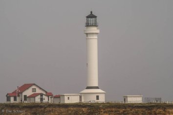Das Point Arena Lighthouse war im April 1906 bei dem großen Erdbeben eingestürzt und wurde in den darauffolgenden Jahren neu aufgebaut. Wir steigen die 135 Stufen bis ganz nach oben und haben dort trotz des Nebels, der sich immer noch nicht verzogen hat, eine ganz gute Aussicht.