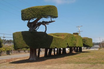 Unterwegs kommen wir dabei unter anderem an diesen recht originell beschnittenen Bäumen vorbei: