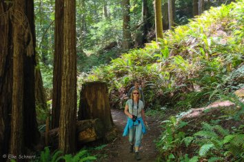 Hier laufen wir den etwa 10 Kilometer langen Waterfall Loop Trail, der uns entlang eines Baches und vieler California Redwoods bis zu den Wasserfällen und zurück bringt. Ein wirklich schöner Weg, der uns gut gefallen hat.