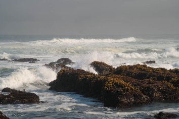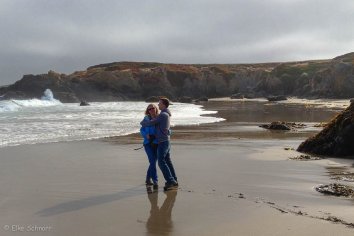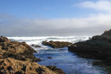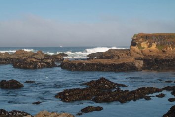 Unseren ersten Stopp machen wir am Glass Beach und das Timing ist diesmal echt gut: Vom morgentlichen Nebel, den wir bis jetzt an der Küste immer hatten, ist gerade überhaupt nichts zu sehen und so verbringen wir fast eine Stunde am Beach, bestaunen die Gewalt der Wellen und halten Ausschau nach den angeschwemmten Glassteinen, die Namensgeber für diesen Beach sind.