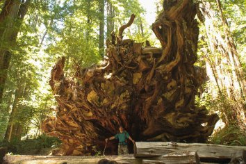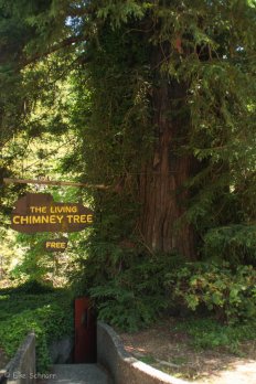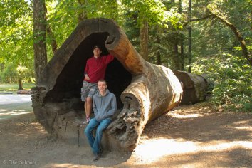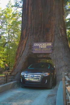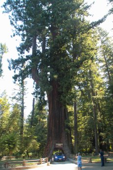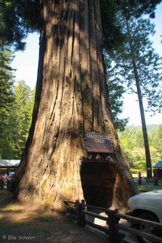 Das Highlight hier ist der Chandelier Tree — ein 2400 Jahre alter Redwood Baum mit sechs Metern Durchmesser, durch den im Jahr 1930 ein Tunnel gesägt wurde, so dass Autos hindurch fahren können.