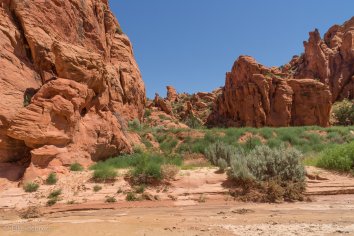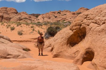 Wir kreuzen einen weiteren Wash, der jedoch trocken ist und laufen diesen jetzt entlang — er führt uns genau in das Gebiet der Brainrocks.