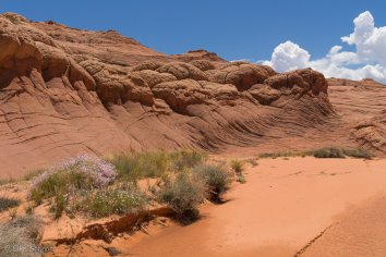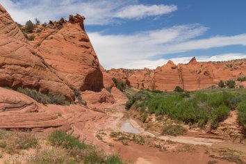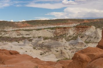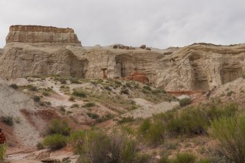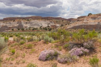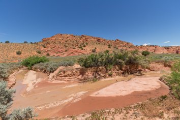 Irgendwann kommt uns ein Jeep entgegen und wir fragen den Fahrer, wie weit man die Straße denn noch befahren könne bis sie gesperrt sei. Er meint, er wäre bis zum Cottonwood Canyon gefahren — also etwa acht Meilen ab der 89 — und nichts sei gesperrt. Die Strecke sei halbwegs gut befahrbar, nur wenn es nochmal regnen sollte, würde man wahrscheinlich nicht wieder herauskommen. Man muss also den Himmel gut anschauen, bevor man hineinfährt.