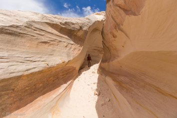 Eine Stunde später machen wir uns dann auf den Weg zu unserem „Ersatzprogramm“. Als erstes steuern wir den Buckskin Gulch Trail Head an, denn wir wollen zu Edmaiers Secret laufen. Unterwegs erkundigen wir uns noch eben beim BLM nach dem Zustand der Cottonwood Canyon Road und der Ranger bestätigt uns, dass sie aktuell durch „fallen rocks“ blockiert sei. Naja, wir haben eigentlich nichts anderes erwartet, aber die Hoffnung stirbt bekanntlich zuletzt.