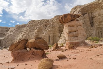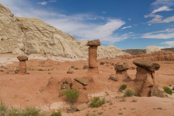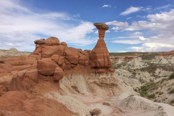 Als wir auf der Rückfahrt nach Page am Parkplatz zu den Toadstool Hoodoos vorbeikommen, ist es 15:30 Uhr und wir beschließen, dass die Felssäulen mit den markanten Kappen heute noch gut ins Programm passen.