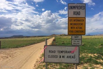 Nur, dass es eigentlich gar kein Desaster ist. Ein Schild am Anfang der Straße besagt, dass diese nach drei Meilen gesperrt sei.