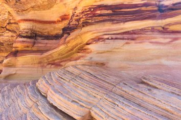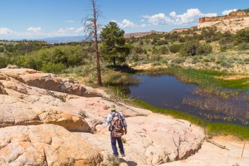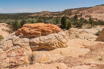 Wir laufen an einem großen Wasserloch vorbei in Richtung Rim und kommen unterwegs an einigen Felsen mit tollen Farbspielen vorbei.