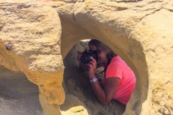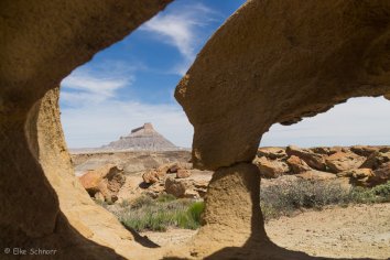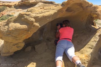 Und um das Foto hinzubekommen, das ich gerne hätte — nämlich die Factory Butte umrahmt vom doppelten Felsbogen — muss ich schon ein wenig Einsatz bringen