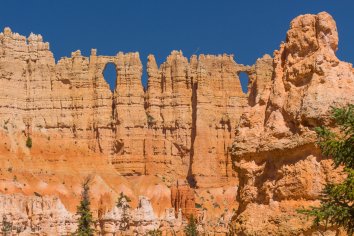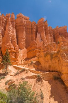 Über den Navajo Trail steigen wir in mehreren Serpentinen in das Amphitheater des Bryce hinab. Die hoch aufragenden Felswände rücken immer näher zusammen und wir genießen es trotz der vielen Leute, die hier noch unterwegs sind.