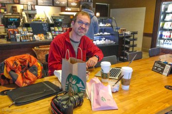 Draußen ist es noch stockdunkel und im Hotel gibt es erst ab 7:00 Uhr Frühstück — so lassen wir uns viel Zeit und gehen dann zum Starbucks nebenan, wo wir uns eine Grundlage für den Tag verschaffen.