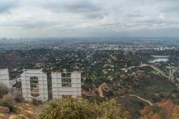 Nachdem wir den Schriftzug von hinten betrachtet haben, laufen wir an der Gabelung noch den alternativen Weg, der zur Front des Hollywood Signs führt. Nicht ganz so nah dran wie von oben — aber man hat auch hier einen sehr schönen Blick darauf: