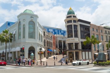 Wir halten für einen kurzen Zwischenstopp an und wandeln einmal durch die exklusive Shoppingzone im „Golden Triangle“. Hier am Rodeo Drive haben sich so ziemlich alle Firmen mit Rang und Namen der High Society niedergelassen — Tiffany, Vuitton, Gucci, und wie sie alle heißen… Allerdings schauen wir nur von außen, denn das hier ist eindeutig nicht unsere Liga.