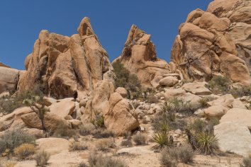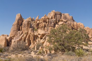 Wir fahren zurück in Richtung Jumbo Rock Campground — von dort habe ich schon so viele tolle Fotomotive gesehen, das wollen wir uns mit eigenen Augen anschauen. Zuvor folgt jedoch noch ein kurzer Zwischenstopp am Scull Rock, der quasi direkt am Straßenrand liegt: