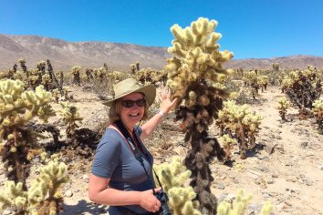 Bei den Cholla Kakteen machen wir ein kurzen Stopp: diese stacheligen Teddybären haben es uns irgendwie angetan. Allzu nah sollte man ihnen ja nicht kommen, da sie sehr anhänglich sind
