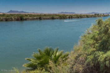 Die Strecke ist dabei ziemlich öde und zieht sich wie Kaugummi. Aber in Blythe an der State Line bietet sich mit dem Colorado River eine nette Abwechslung und wir nutzen die Gelegenheit direkt für ein Picknick am Wasser.
