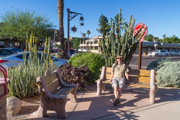 Wir packen unsere Sachen aus, akklimatisieren uns ein wenig und brechen dann nochmal auf für einen Bummel durch die Stadt. Was wir dabei unterwegs von Scottsdale sehen, begeistert uns — wir haben selten so eine extrem saubere, freundliche und architektonisch ansprechende Stadt gesehen.