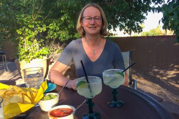 Es gibt die ersten Margaritas des Urlaubs, dazu Carne de Fuego für mich und Tacos für Andreas — beides ist sehr lecker.