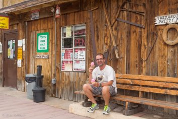 Während der gesamten Fahrt kommt uns kaum ein Auto entgegen — es ist fast wie ausgestorben hier. Am Canyon Lake treffen wir das erste Mal auf andere Besucher und kommen kurz mit ihnen in’s Gespräch. Die Amerikaner empfehlen uns, in Tortilla Flat unbedingt die Prickly Pear Ice Cream zu testen, diese wäre wirklich einzigartig.