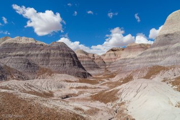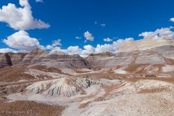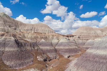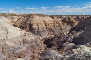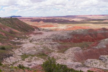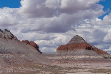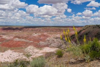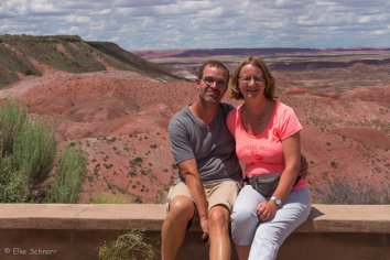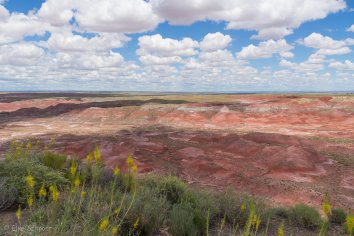 Bei der Fahrt auf der Parkstraße kommen wir im nördlichen Teil zunächst am Painted Desert vorbei, wo die Erosion eine farbenfrohe Landschaft gestaltet hat. Wir schnüren unsere Wanderschuhe und laufen auf dem Rim-Trail entlang. Hier bieten sich tolle Ausblicke auf die rotbraunen Badlands, die sich bis zum Horizont erstrecken. Eine bunte Welt, die ihresgleichen sucht…
