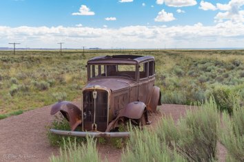 Die Parkstraße führt u.A. an einem kurzem Stück der historischen Route 66 vorbei, wo wieder etwas fotogener Schrott herumsteht: