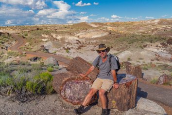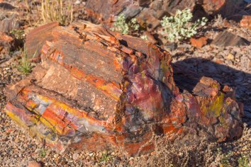 Das meiste versteinerte Holz entdecken wir jedoch nur wenig später im Crystal Forest. Auf dem kurzen Loop-Trail liegen besonders schöne und farbige Fossilien. Und wenn man sie mit ein bisschen Wasser nassmacht, kommen die Farben noch viel besser zur Geltung.