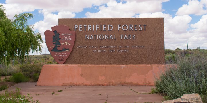Unterwegs legen wir in Winslow noch einen kurzen Zwischenstopp ein, um im Safeway unsere Vorräte aufzufüllen und zu tanken und kommen nach weiteren zwei Stunden entspannter Fahrt gegen 13:00 Uhr am Nordeingang des Petrified Forest Park an.