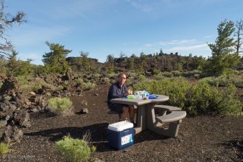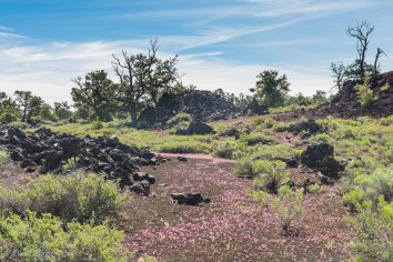 Nach der Ranger Tour laufen wir noch diverse andere Trails im Park ab und klettern auf den Inferno Cone. Von oben hat man einen tollen Rundumblick auf die Cinder Cones entlang des Great Rift, u.A. auf den Big Cinder Butte — einen der größten Schlackenkegel der Welt.