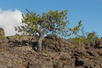 Die Tour dauert etwa 45 Minuten und außer uns sind noch zwei Familien mit kleinen Kindern dabei. Der Ranger erzählt entsprechend anschaulich über die Entstehung des Lavafeldes und über die Fauna und Flora, die es unter den extrem harten Bedingungen hier schafft zu überleben.
