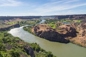 Hier donnern die Wassermassen des Snake River über 60 Meter in die Tiefe — ein wirklich spektakuläres Schauspiel, was den Niagara-Fällen kaum nachsteht.