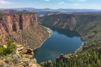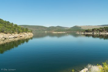 Im Visitor Center erkundigen wir uns nach Hiking Trails und schauen uns dann erst noch den Flaming Gorge Dam an. Dieser staut mit seinen 765.000 Kubikmetern Beton den Green River zu einem beachtlichen 146 Kilometer langen Reservoire an. Das Wasser ist hier übrigens sehr sauber und glasklar.