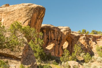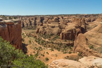 Auf der Weiterfahrt wird die Straße dann tatsächlich deutlich besser und so machen wir noch den kurzen Abstecher in den Four Arch Canyon, der mehr oder weniger direkt am Weg liegt. Wir parken unser Auto an der High Adventure Base und stromern ein wenig im Gelände herum.