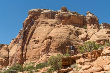 Einen richtigen Trail gibt es hier nicht, wir laufen mehr oder weniger entlang der Dirt Road und entdecken dabei zumindest zwei der hier liegenden Arche: den Bullwhip Arch und den Crips Arch.
