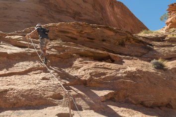 Auf dem Rückweg beschließen wir, auch noch den Abstecher zum Pinto Arch einzuschieben. Um diesen zu erklimmen, ist ein bisschen Kletterei erforderlich und der Weg ist nicht ganz so gut markiert wie der Haupttrail. Aber wenn man weiß, wo er liegt und auf Sicht laufen kann, ist es eigentlich gar kein Problem.