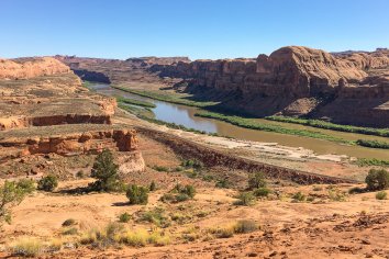 Und der kleine Umweg lohnt sich auf jeden Fall, denn auch der Pinto Arch ist ein sehenswerter Steinbogen und man hat von oben einen schönen Ausblick auf den Colorado River: