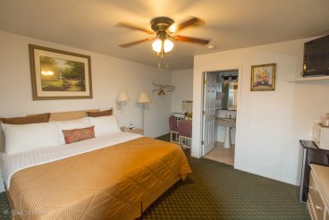 Hier werfen wir beim Durchfahren einen Blick auf die vorhandenen Restaurants und beschließen, das Rib City Grill auszuprobieren. Vorher fahren wir jedoch noch schnell zum Hotel und checken ein — nicht dass unser Zimmer sonst wieder weg ist
