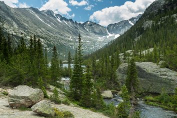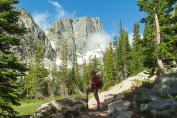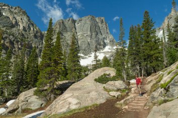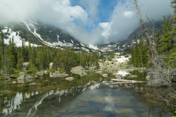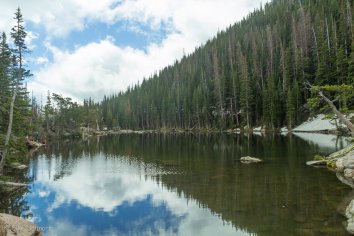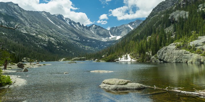 Später kommen wir am Dream Lake vorbei, der wunderschön in die Landschaft eingebettet ist. Umrahmt von Bergen, deren Gipfel sich im kristallklaren Wasser spiegeln, bietet er einen faszinierenden Anblick.