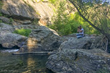 Als wir uns wieder zum Gehen wenden, ist auch gerade ein junges Pärchen angekommen und die zwei machen sich bereit, in den Pool zu springen. Ansonsten sind wir zu dieser Tageszeit jedoch völlig alleine unterwegs.