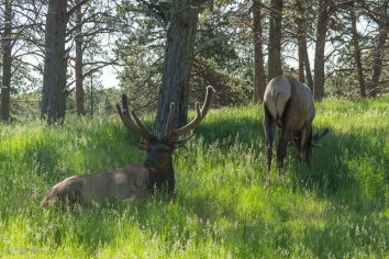 Wir entdecken tatsächlich sehr viele Tiere, sogar einige, die wir noch nie zuvor gesehen haben wie z.B. Rentiere. Das Highlight sind aber die Unmengen an Schwarzbären, die es hier gibt. So viele, dass es schon regelrecht unnatürlich ist. Die Bären laufen völlig unscheu zwischen den Autos herum. Einer geht wie im Trance ständig vor dem Ausgang auf und ab.