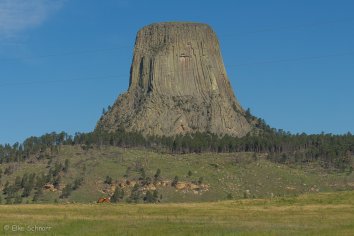 Eine Dreiviertelstunde später haben wir ausgecheckt und uns im Gästebuch verewigt, sitzen im Auto und fahren zum Devils Tower.