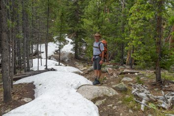 Nach 2.5 Stunden Fahrt erreichen wir den Circle Park Trailhead im Bighorn National Forest, wo wir uns für heute den Sherd Lake Loop Trail herausgesucht haben. Wir sind etwas erstaunt, als wir bei unserer Ankunft noch vereinzelte Schneereste ausmachen — wir hatten irgendwie gar nicht auf dem Schirm, dass wir uns hier in 2500 Meter Höhe befinden.