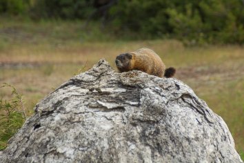 Außerdem entdecken wir ein Murmeltier, was auf einem dieser geothermalen Haufen hockt und sich bei der Kälte wahrscheinlich gerade den Hintern anwärmen lässt.