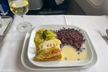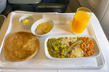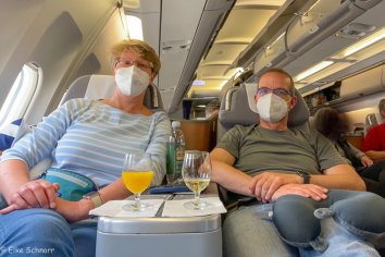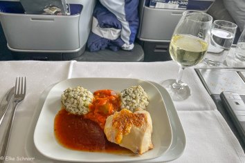 Sowohl Boarding als auch Start erfolgen pünktlich und wir werden während des 10-stündigen Fluges vom Bordpersonal nach Kräften verwöhnt. Das Essen ist super und wer in diesen tollen BC-Sitzen nicht schläft wie ein Murmeltier, ist selber schuld