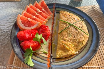 An unserem letzten Tag in Moab habe ich morgens leider einen Totalausfall. Mir ist so übel, dass ich nichtmal das Frühstück von Anna und Vic essen kann und außer einem Kräutertee nichts runterbringe. Echt schade um das leckere Omelett: